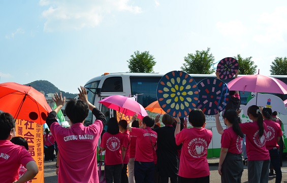 お帰りは学生・教職員みんなでお見送り!暑い中お越しいただきありがとうございました。