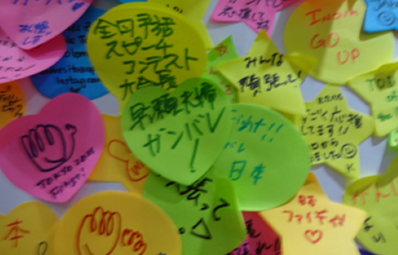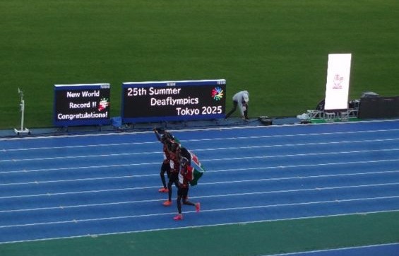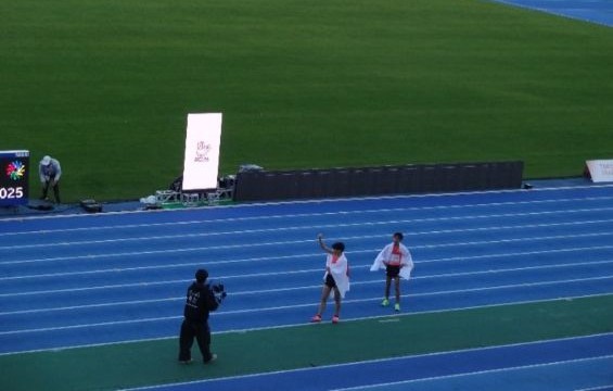 午後からは駒沢陸上競技場に移動して陸上競技に出場する各国の選手を応援しました。競技場には多くの観客が入っていて手話を使って揃って応援する光景にはとても熱気がありました。そこで日本男子選手が4×100、4×400のリレー2種目で金メダルを獲った瞬間に立ち会うことができました。アスリートの皆さんの頑張る姿に元気をたくさんいただいた一日でした。参加した学生の皆さんも手話技術を一層磨くとともに、インクルーシブな社会を創っていく意義を感じてくれたことと思います。