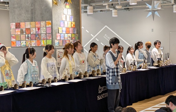 12月19日、21日に幼児教育学科33名がハンドベルの出張演奏を実施しました。