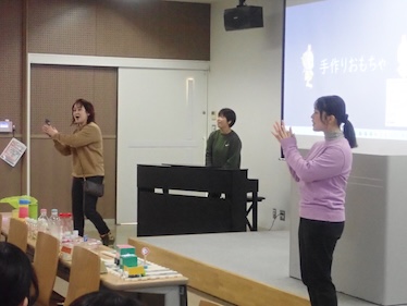 前に並んでいるのが先生方が作られたオリジナル手作りおもちゃの数々です!