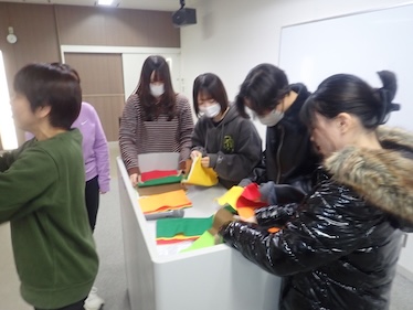 説明を聞きながら、折り紙を折っていきます。