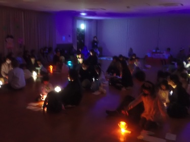 最後に全員でぼんぼりに明かりをつけました。素敵な空間が広がります。