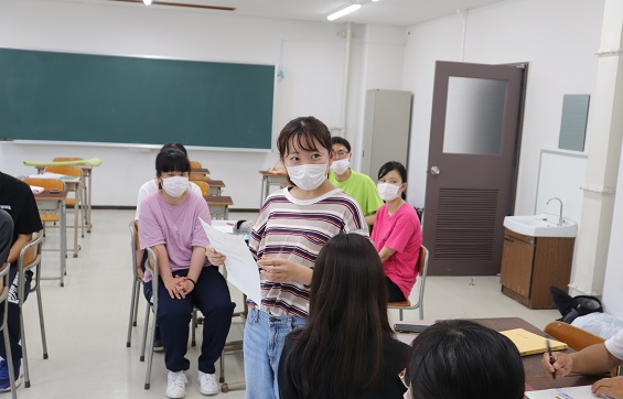 グループ代表として発表する学生。 グループ代表として発表する学生。